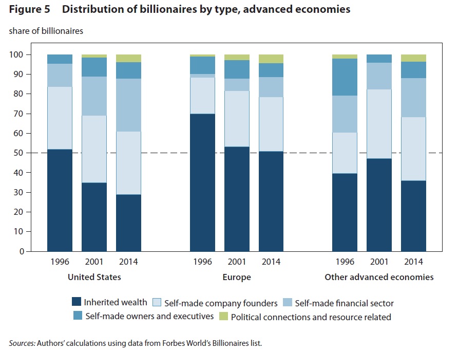 6. Wallenbergarna är säkert tacksamma men de är inte med i listan över miljardärer. Eftersom Sverige i likhet med USA haft högre ”deathtax” än många Europeiska länder (som fortfarande i vissa fall har fidekomilagar) är deras pengar undanstoppade i stiftelser. Tråkigt att inte författaren skriver något om det intressantaste i graferna för både USA och Europa. Ökningen av miljardärer med bakgrund i den finansiella industrin.